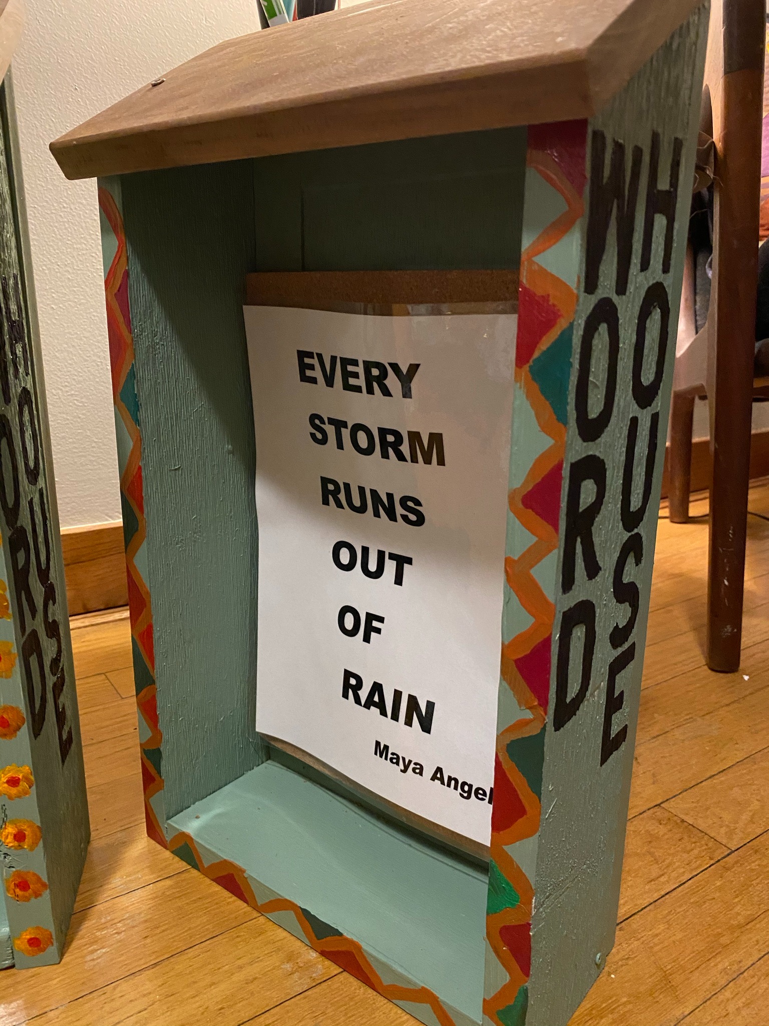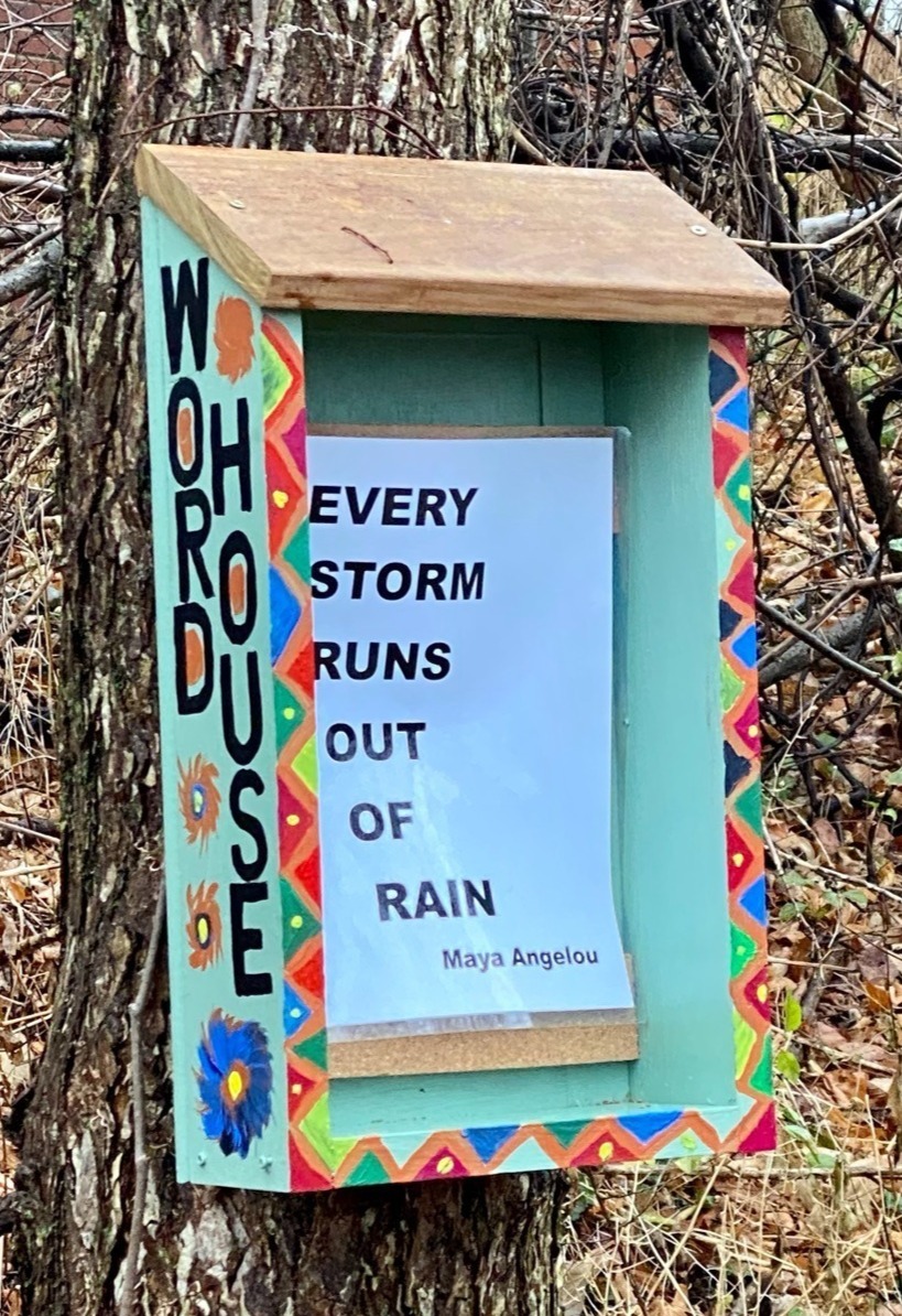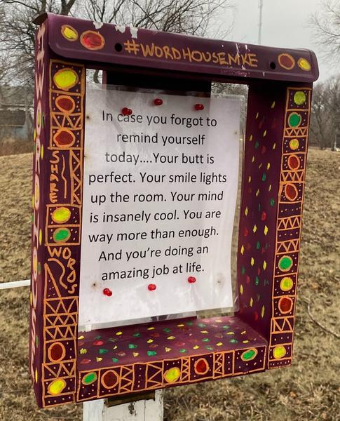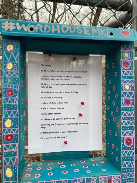 What is A WordHouse? It is a small, weather-resistant public art installation designed to share inspirational words, poetry, and messages of care with the Milwaukee community. WordHouses are installed in public-facing spaces where neighbors and passersby can pause, reflect, and feel a moment of connection. Each WordHouse is both a functional structure for sharing words & a public art piece created and decorated by local artists.